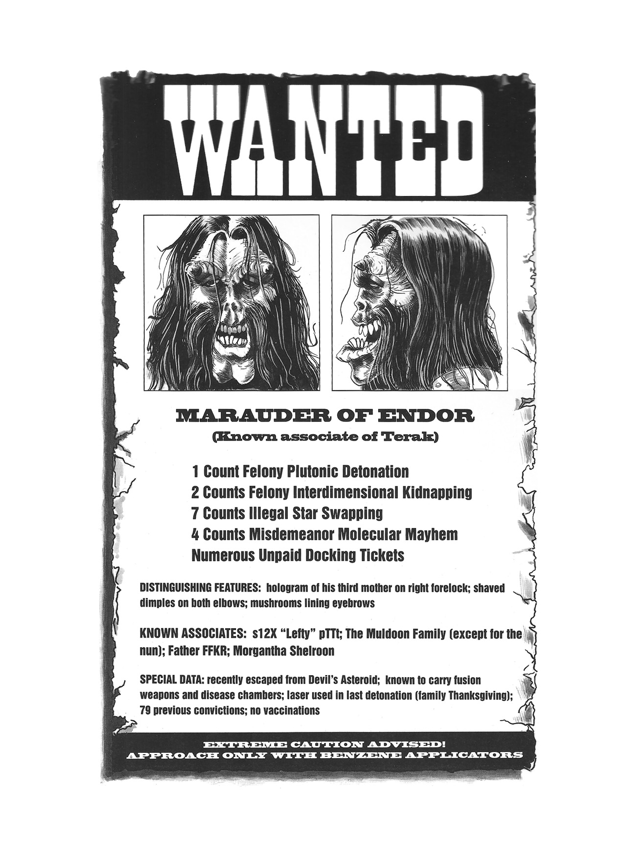 The wanted poster of the "Endorian Marauder" in Monsters and Aliens from George Lucas