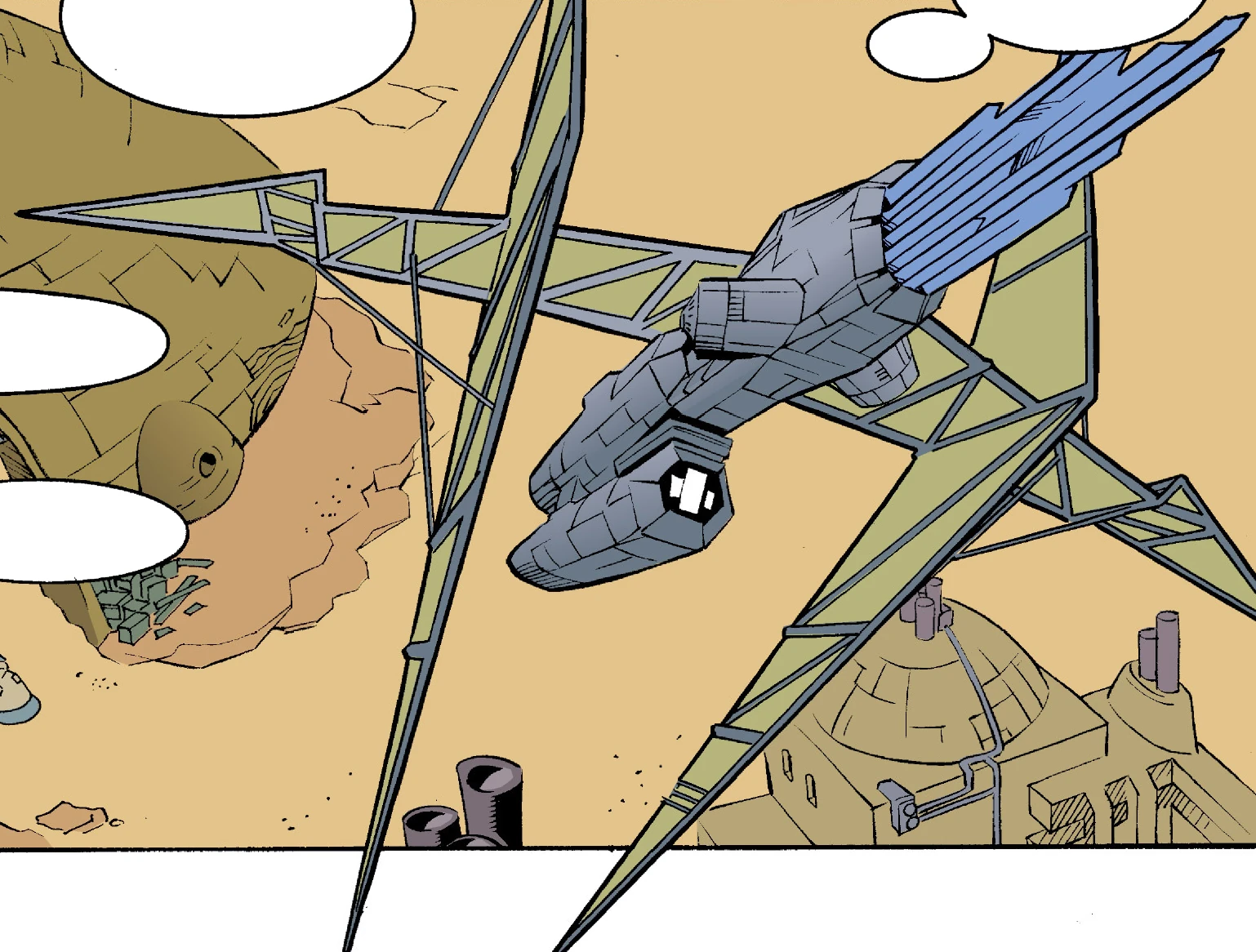 The Shadow Runner's only appearance in Star Wars canon is in Star Wars: Tales of the Jedi – The Golden Age of the Sith, a story arc of the Tales of the Jedi comic book series, written by Kevin J. Anderson and released in 1996. This appearance comes in the prologue issue, Conquest and Unification, in which the ship is destroyed. In this issue the ship was illustrated by Dario Carrasco, Jr.[1]
