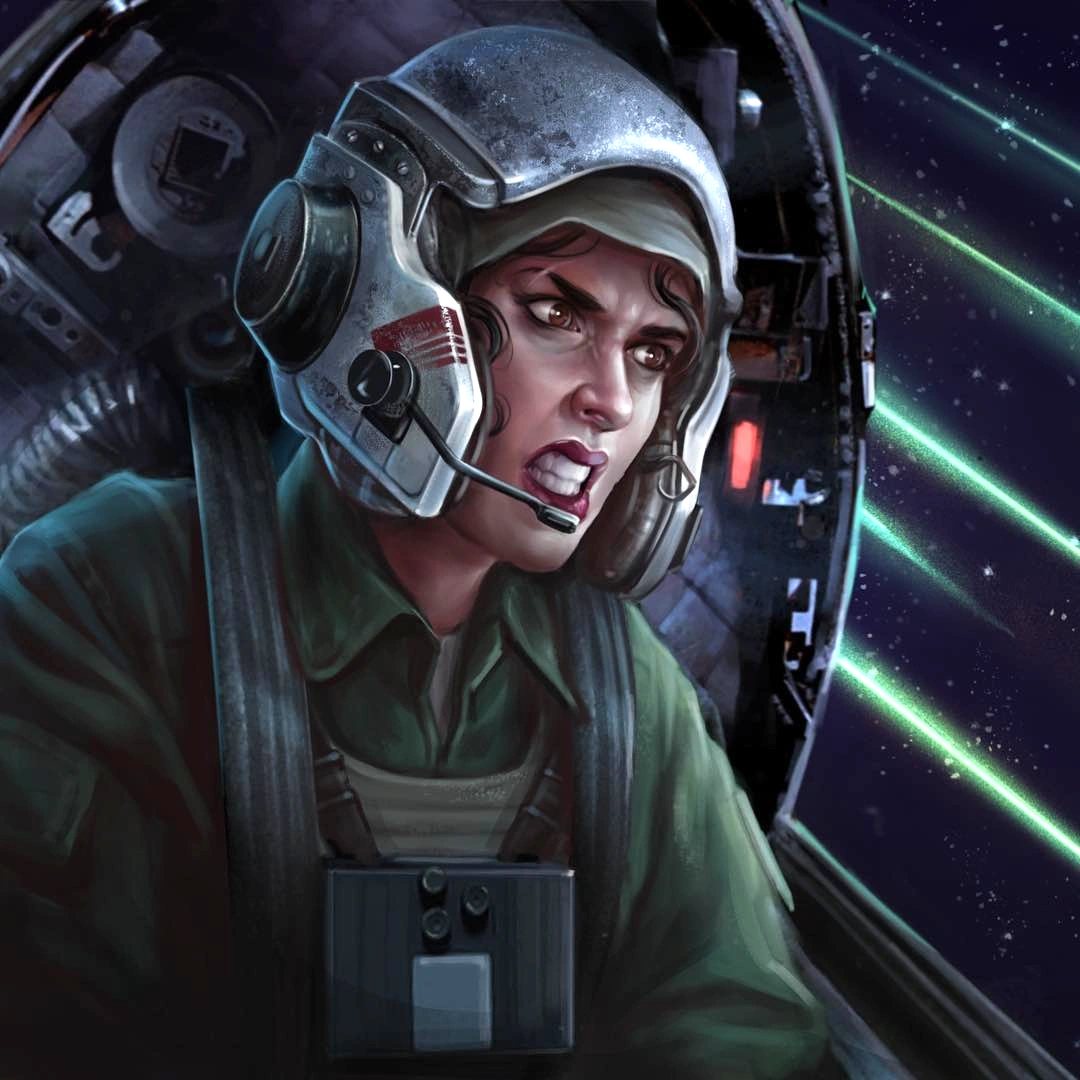 Shara depicted in an orange flightsuit at the Battle of Endor