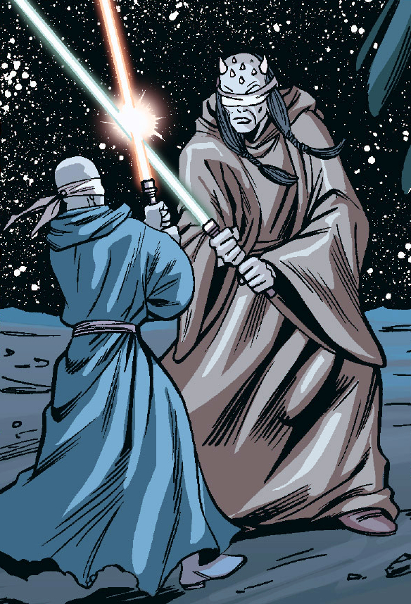 The young Hett is trained by his master, Eeth Koth.