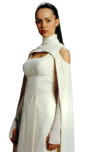 Retrac preferred simple white robes,[1] and while on the Tantive III, she wore a cream-colored dress and matching cape with a silver headpiece. She wore a Kueget LN-21 blaster pistol on her right hip[3] and also carried a stun blaster for if she ever had to defend herself or Organa.[1]