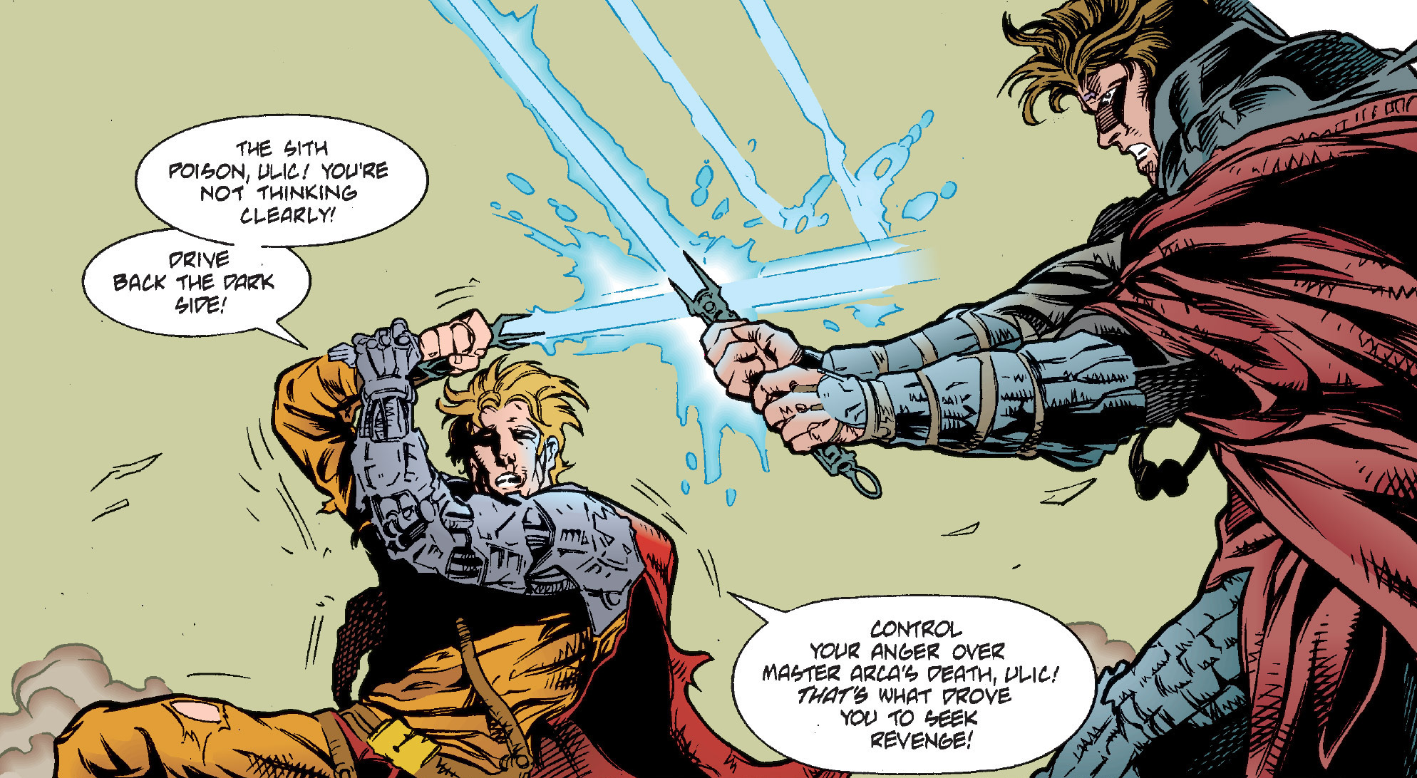 - "Once we were mighty Jedi of the Republic, brothers in the Force. But the Great Schism between the dark side and the light turned Jedi against Jedi. Our ancestors were defeated, driven offâŚcast out!"