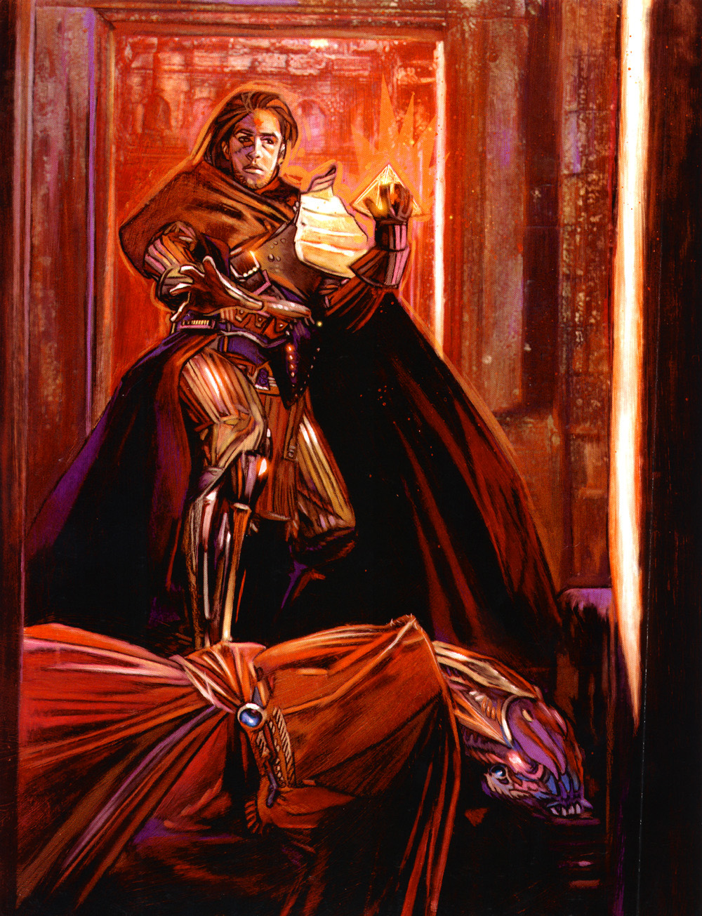Unfit for the public eye, he handed control of Iziz to his wife, Queen Amanoa, who abandoned her studies with Nadd to focus on the affairs of state. While the people of Onderon believed Ommin dead, he hid beneath Iziz in his lair, continuing his dark side study, collecting Sith artifacts, and gathering an cult of followers calling themselves Naddists. Ommin and his wife were both too embroiled with their own interests to take direct command of the cult, and so their proxies, Warb Null and Novar, acted in their stead. The armor-clad Warb Null was a young Force-sensitive who had been seduced to the dark side by a Sith spirit, while Novar had been an apprentice to Ommin and Amanoa following his tenure as Ommin's personal aide.