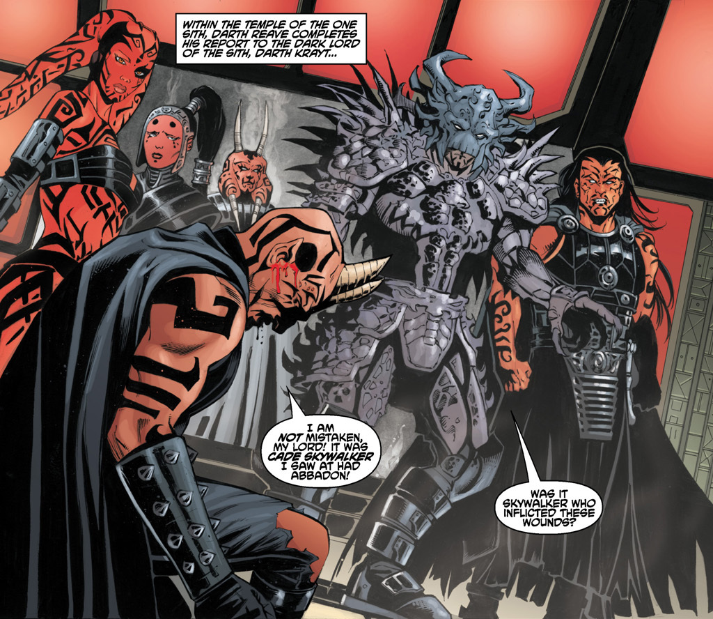 Some of the most prominent Legacy era Sith with their leader, Darth Krayt (armored)