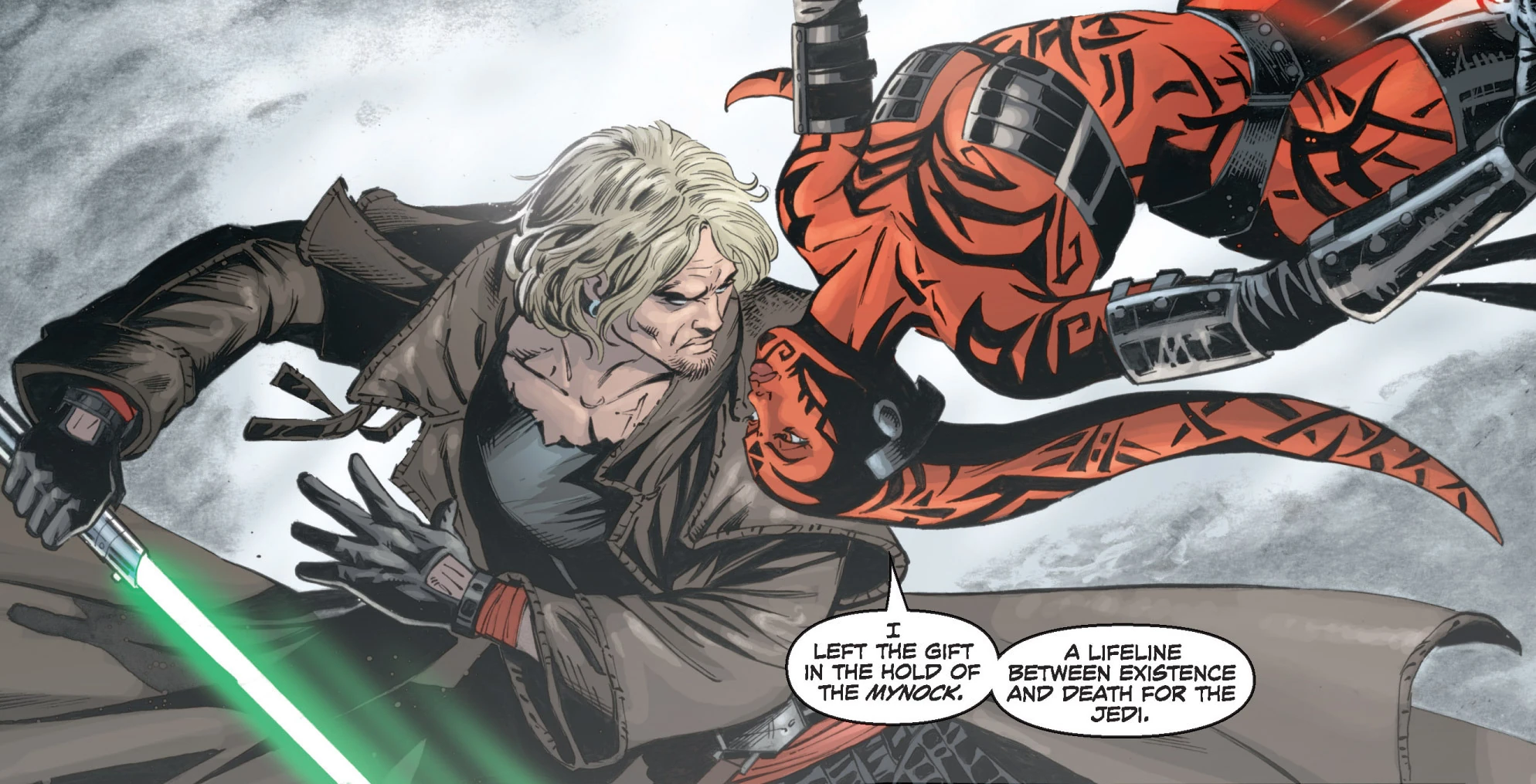 In 138 ABY, during the final stages of the Second Imperial Civil War, a skirmish took place on The Wheel space station. Darth Talon of the One Sith briefly fought the crew of the Mynock, but fled after informing them of a gift she had left aboard the ship—Imperial Knight Antares Draco, frozen in carbonite. Draco had been tortured into revealing the location of the New Jedi Order's Hidden Temple to the Sith, and Dark Lord of the Sith Darth Krayt delivered Draco to Mynock Captain Cade Skywalker so that Krayt's enemies in the Alliance would rush to the Jedi's aid in defending the Temple, thus allowing him to crush them all in one swift stroke with his secret Sith trooper army.