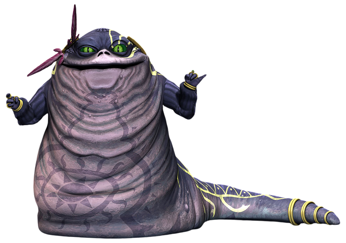 Ziro the Hutt bore the golden tattoos of the wealthy Hutts of Sleheyron on his head, back, arms and tail