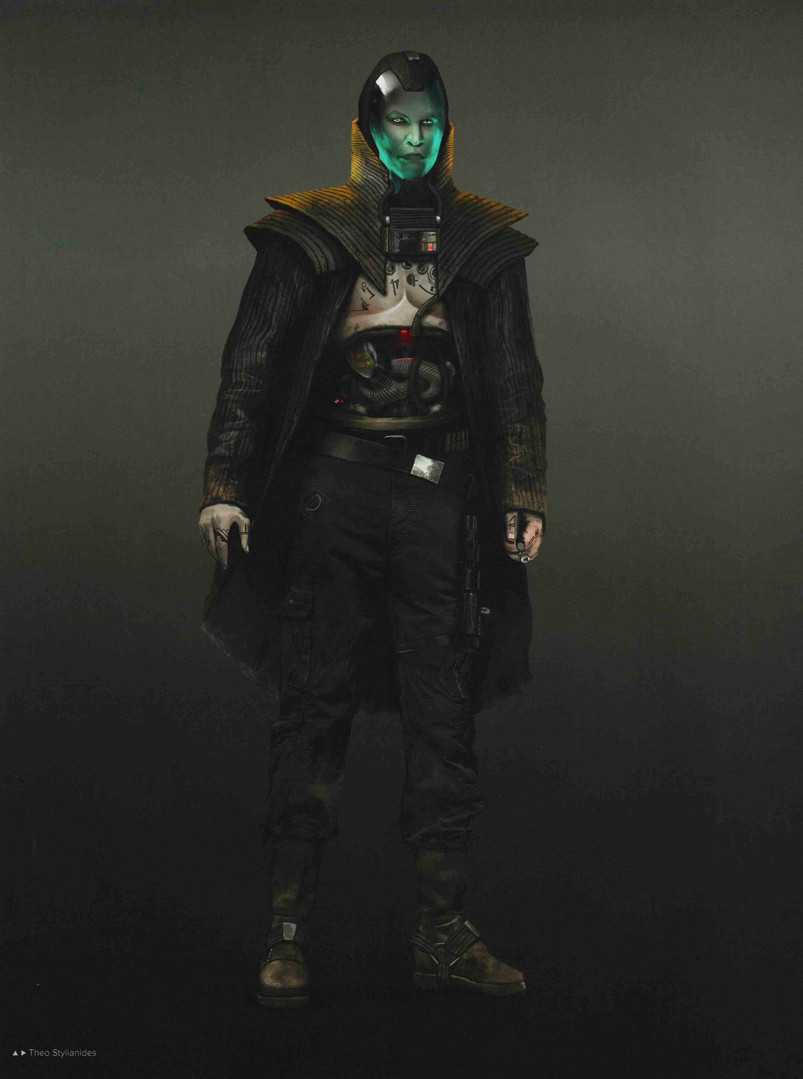 Sorc Tormo had cybernetics attached to his torso. He wore a helmet along with a jacket and two rings on his left hand.[1]