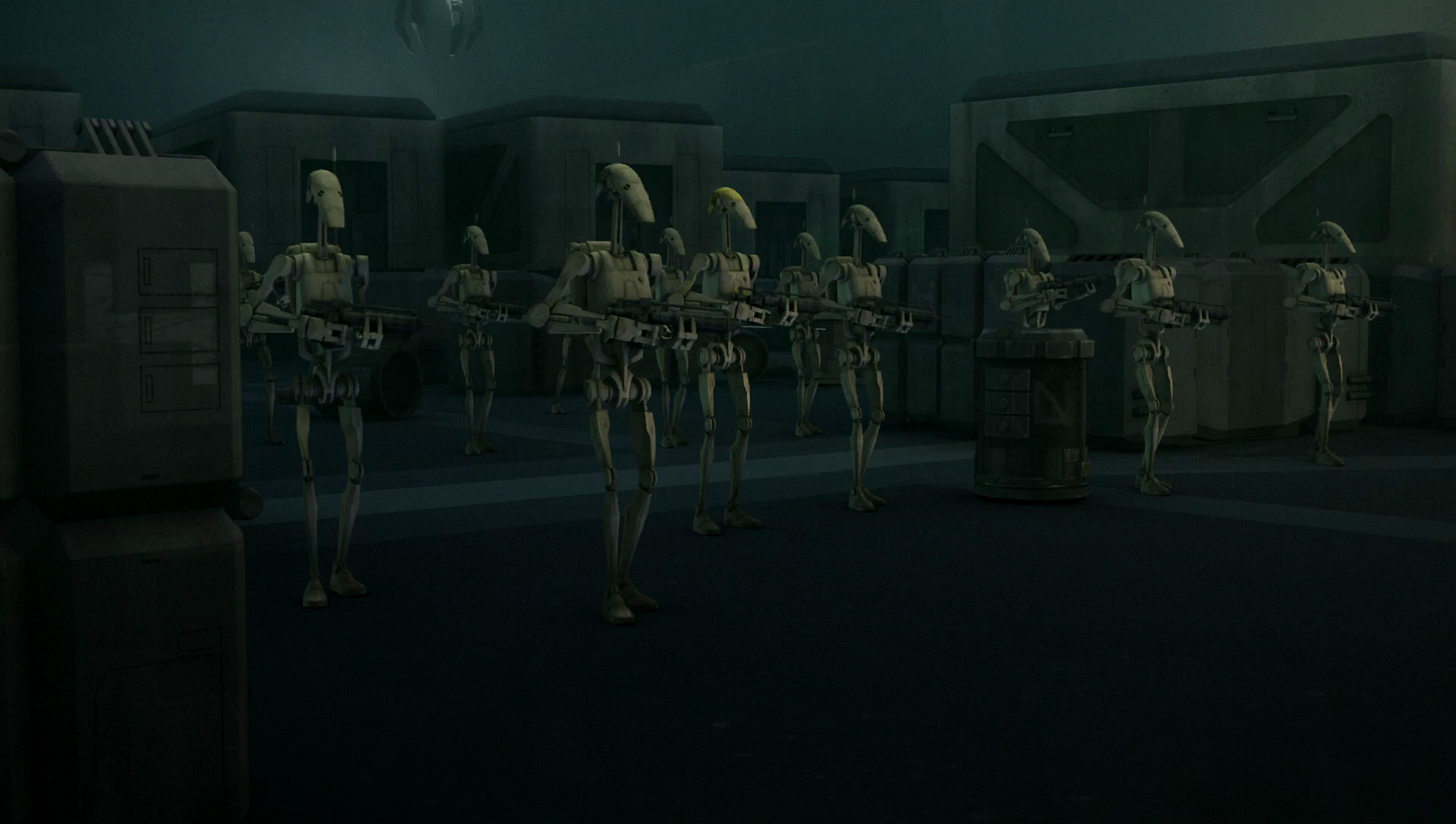 Squad Six was a squad of B1-series battle droids led by an OOM command battle droid. The squad was part[1] of General Kalani's garrison[2] on Agamar. After a skirmish against several rebels from Phoenix Cell, the half of Squad Six was destroyed but the other half survived. The Separatist holdout and the rebels then ceased hostilities and fought together against the Galactic Empire. The former clone trooper Captain Rex and Kalani reconciled and agreed to an unofficial end to the Clone Wars by the end of the mission, and the remainings members of Squad Six escaped with Kalani and the rebels from Agamar.[1]