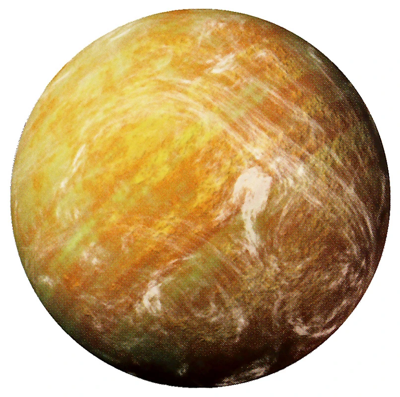 The dominant topographical features of Sriluur were white deserts, dry scrub-lands and rocky fields, and sandstorms were frequent.[6] The planet had enormous copper reserves, but these were never exploited through large-scale mining,[1] with miners instead preferring to focus on other metals,[7] minerals and gems—exports vital to Sriluur's economy.[4] Its oceans were high in acid content,[7] but still home to some lifeforms.[11] Nearly all of the planet's northern hemisphere was covered by the Great Cueva Expanse, an enormous desert consisting mainly of crater holes.[7] The southern hemisphere, littered with dormant volcanoes and black transparisteel canyons, was home to most of the planet's inhabitants.[1] Despite the harsh environment, Sriluur was almost entirely self-sustaining, with an extensive agricultural sector centered around the Cupric Islands.[7] Clean water was a very valuable commodity on the planet, with most of the supply originating on nearby Sedri.[6] The largest settlements on the arid world were the Meirm City, the main trading port Dnalvec, and the administrative center of Al-Campur.[1] At the center of each Weequay city was a thal, a black stone shrine to their gods.[12]