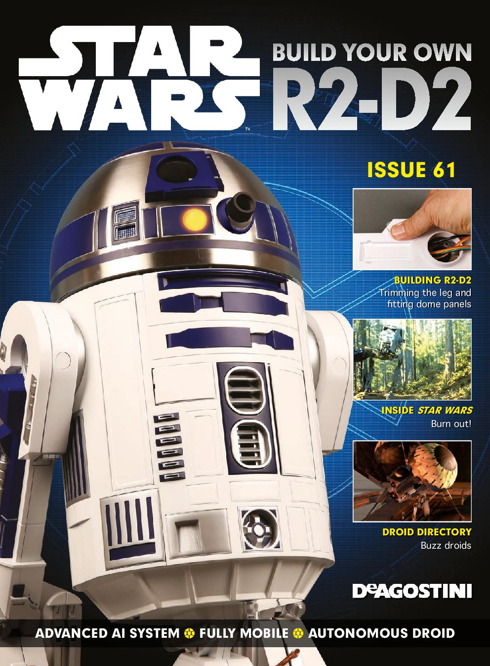 Star Wars: Build Your Own R2-D2 61 is the sixty-first issue of the Star Wars: Build Your Own R2-D2 partwork magazine published by De Agostini. It came with components for the dome and the left leg of the buildable R2-D2.