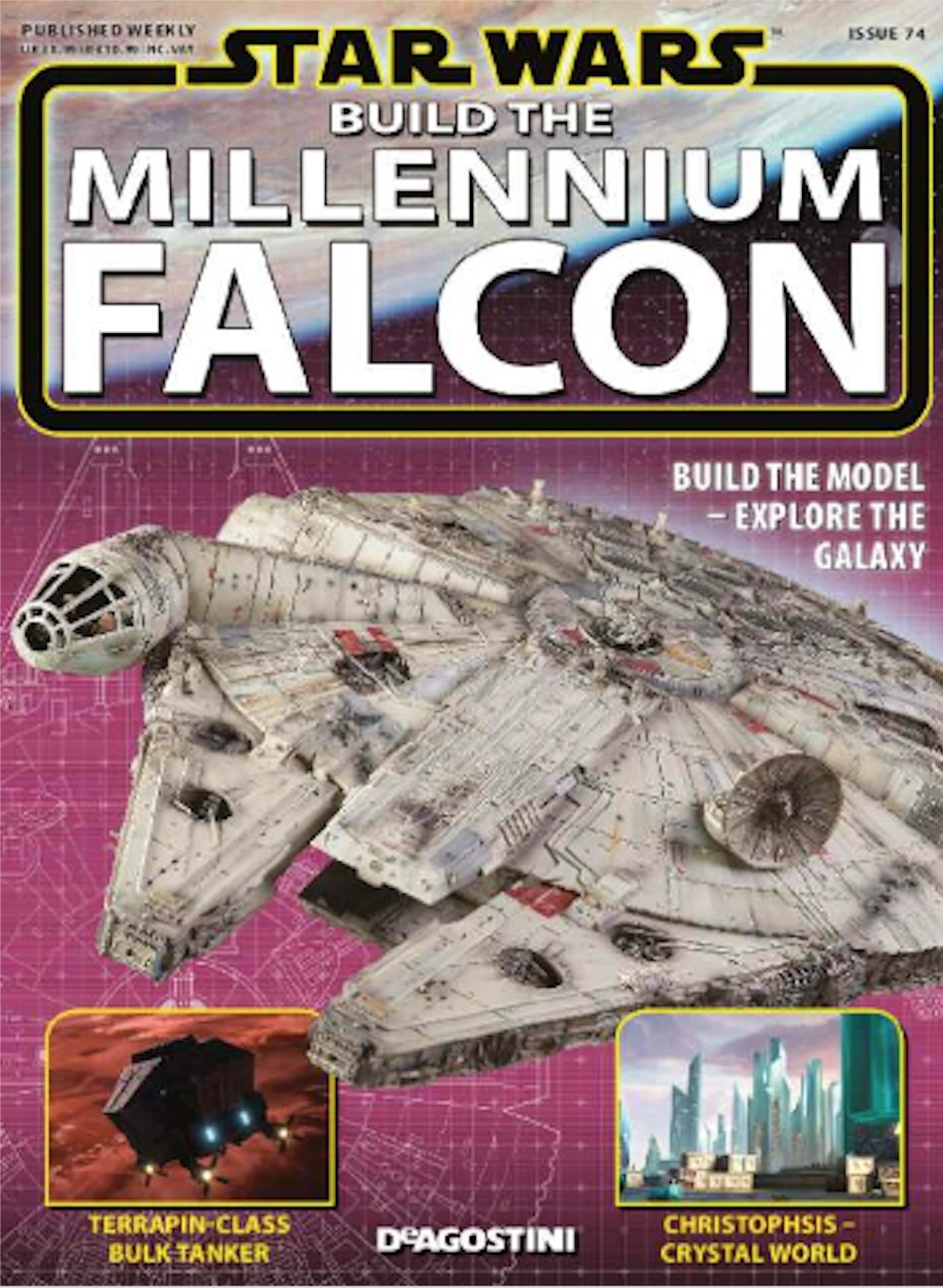 De Agostini Publishing: Build the Millennium Falcon Magazine & Model by Chris Wyman on TheForce.net (January 8, 2015) (backup link archived on November 6, 2016). Therefore, Star Wars: Build the Millennium Falcon 74 was published around June 1, 2016.
