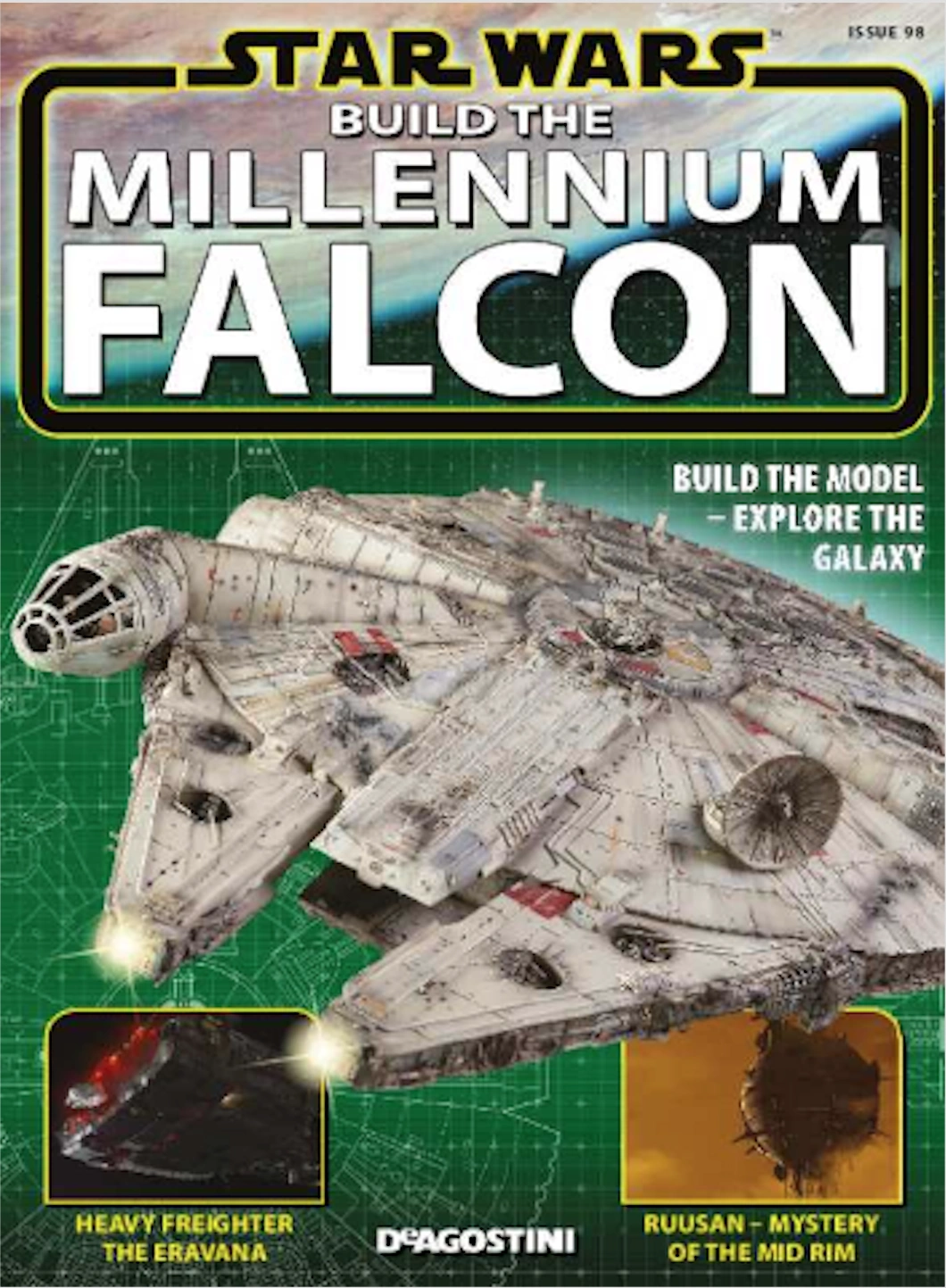 Star Wars: Build the Millennium Falcon 98 is an issue of Star Wars: Build the Millennium Falcon. The issue included the details for the engine bay's cover and landing struts.