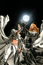 Dawn of the Jedi comprises three five-issue miniseries.[5] It was not published monthly, in the same vein as Star Wars: Dark Times and Star Wars: Invasion.[24] This is because Ostrander and Duursema worked on the entirety of each arc together instead of one at a time.[25] John Ostrander and Jan Duursema wrote the story for the series, while Ostrander penned the script and Duursema pencilled the artwork. Dan Parsons was the inker, Michael Heisler was the letterer, and Wes Dzioba handled coloring duties. Duursema was the cover artist for the five issues of Force Storm,[12] but David Michael Beck took over as the cover artist starting with the first issue of Prisoner of Bogan.[3] Gonzalo Flores was responsible for the variant cover for issue 1[2] that was used as the cover for the first trade paperback.[26]