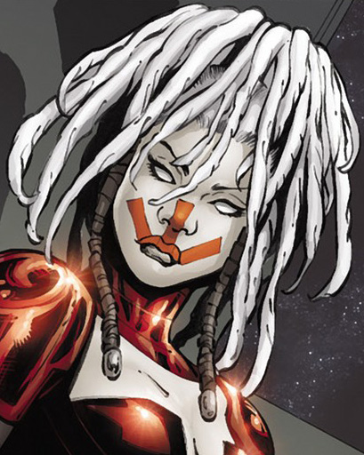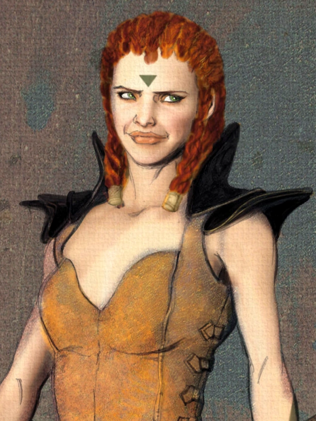 Shae Koda is a Human female Je'daii Journeyer of Dathomiri descent whose mother and father were killed by Queen Hadiya in the last battle of the Despot War.[11] Brave, restless, and reckless,[1] Koda has an incessant curiosity and finds her calling studying alchemy under Master Quan-Jang. While working with the rancor-dragon Butch that she created, Koda receives a vision of Xesh, and she meets up with Sek'nos Rath and Tasha Ryo. Koda is friends with Rath, though she resents Tasha Ryo as she sees her as a spoiled brat.[9] During the fight with Xesh, Koda proves to be the only one capable of igniting Xesh's Forcesaber with her anger,[10] but it is Koda's manifestation of the light side that convinces Xesh to aid them against the saarl. Koda and her friends are dismayed when Xesh is exiled to Bogan,[12] and when she joins the team of Je'daii pursuing Xesh and Lok,[13] Koda harbors intense anger towards Xesh: she saw his escape from Bogan as a betrayal of the trust Koda and the others had placed in Xesh as his friends. Xesh's feelings for Koda leads him to save her from death and take her prisoner,[15] and Koda is able to convince the Force Hound to choose his own path and stop serving Lok on Shikaakwa.[16]