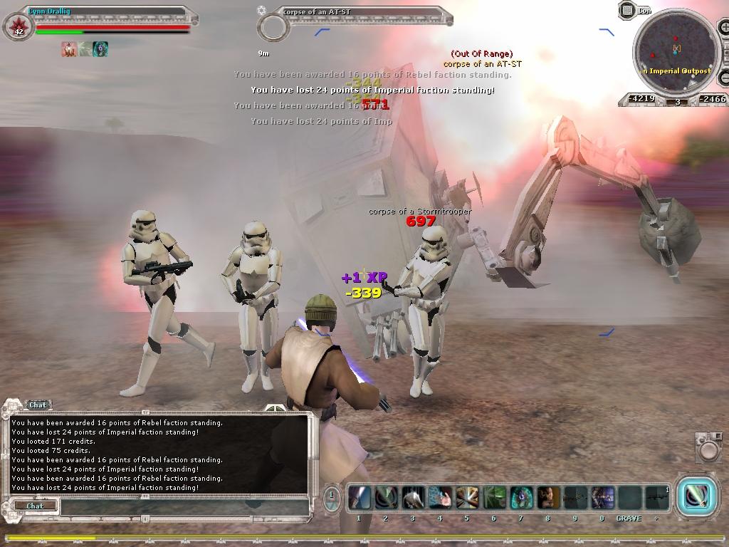The game focused more on allowing its players to experience as many facets of Star Wars lore as possible, sometimes at the expense of consistency inside its own universe (for example, the mayor of Mos Eisley highlighted the incident in the cantina when Obi-Wan revealed himself as Jedi as something special, even though Jedi were a common part of the game population).