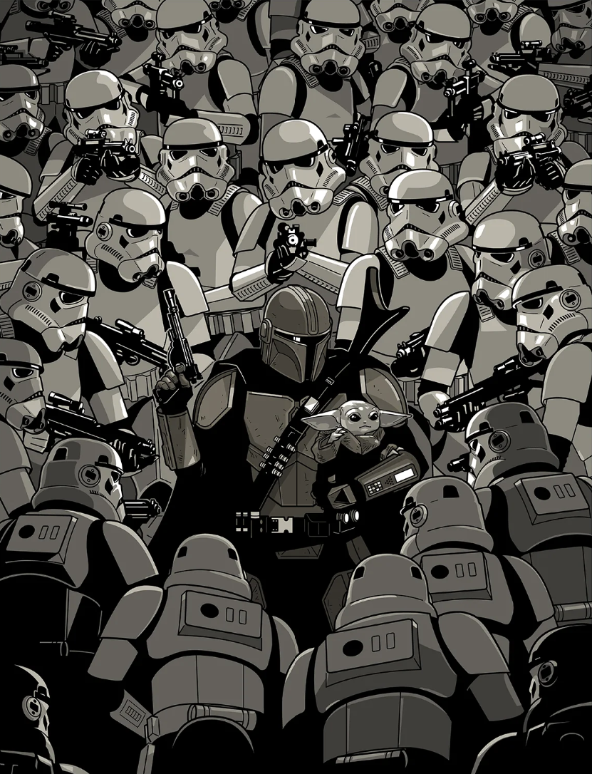 The stormtroopers of Moff Gideon's Imperial remnant found themselves opposed to the Mandalorian Din Djarin, who took on their target, the infant Grogu, as his charge.