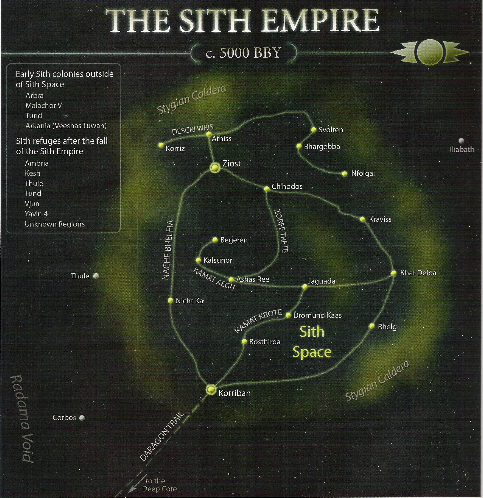 - ↑ Star Wars: The Essential Atlas Online Companion's entry for the Drezzi system places sith worlds in the Esstran sector