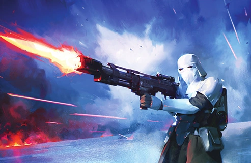 A snowtrooper firing a T-7 ion disruptor