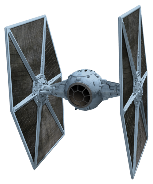 The first in the series of advanced twin ion engine starfighters, the original TIE fighter was developed by Sienar Fleet Systems. The agile single-pilot craft has a titanium alloy hull, and quadanium steel armored solar panels, but lacks a deflector shield and primary life-support systems. The TIE Fighter was intended to be used as a short-range attack craft, launching from nearby Imperial installations. TIE Fighters typically attack in swarms to overwhelm their opponents.