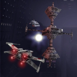 The base was identified as the XQ1 Platform Obsidian and an all-out assault was put into action. B-wings and X-wings launched from the Liberty and hypered into the combat area to engage the station. A surprise awaited them. The Imperial Research Ship Sardis was parked close to the station. Scans of the Sardis revealed it to be the next stage in the TIE Experimental Project. Similar to the Droid Control Ship fielded by the Trade Federation at the Blockade of Naboo, this vessel acted as both hangar and control ship for the new TIEs. However, the Imperials had been caught unawares, and the Sardis was unable to perform to its peak, either because it was uncrewed, or its systems were not yet operational. Responding to the rebel attack, transports Tasson launched from the station to ferry pilots to the waiting Escort Transports of Suluk group. Once activated, the pilots onboard were able to bring prototype TIEs into action.