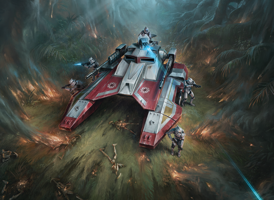 Used early in the Clone Wars by the Galactic Republic's Grand Army[1] and seeing action as new vehicles at the First Battle of Geonosis that kicked off the war,[8] the TX-130 Saber-class fighter tank was utilized against the Separatist Alliance.[1] On Geonosis, the TX-130 was available to Jedi as a craft from which they could command their new clone trooper forces, with Mace Windu, Ki-Adi-Mundi, and Kit Fisto possibly making use of the tank if they did not stay on foot.[8] During the Clone Wars, the fast TX-130 tanks were used to frightening effect, and clone trooper units were at times saved by the arrival of a squadron. Due to the fighter tank's great mix of speed and firepower, the tank was popular among clone troopers and tank crews.[1]