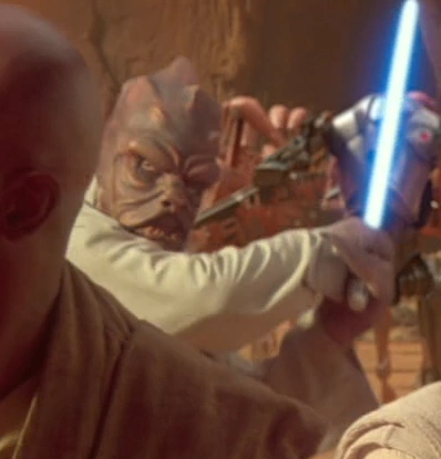 Tarados Gon was a Force-sensitive Klatooinian who served as a Jedi Knight in the Jedi Order. In 22 BBY, Gon was part of the assault team led by Jedi Master Mace Windu that traveled to the planet Geonosis to save Jedi Knight Obi-Wan Kenobi from execution by the Confederacy of Independent Systems.