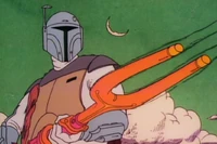 Numerous products have been produced based on Boba Fett's depiction in the special. In 1996, Lucasfilm released animation cels that combined an original cel with new artwork.[45] As part of its 30th anniversary collection, Hasbro released a Boba Fett action figure.[46] Funko released bobbleheads.[47] StarWarsShop released a Gentle Giant maquete as a Celebration exclusive,[48][49] and an ACME character key.[50][51] In 2018, Gentle Giant produced a mini-bust,[52] and Sideshow Collectibles & Hot Toys released a sixth-scale figure.[53] A lunchbox exclusive was produced for Celebration Chicago.[54] A Black Series figure was available at the 2019 San Diego Comic-Con.[55]