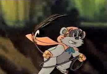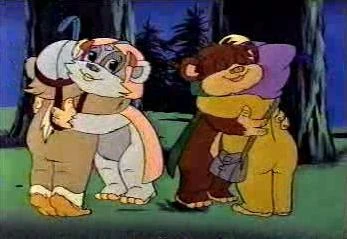 Latara hugs Princess Kneesaa and Teebo hugs Wicket after being saved by them. Princess Kneesaa in action with her grappling hook.