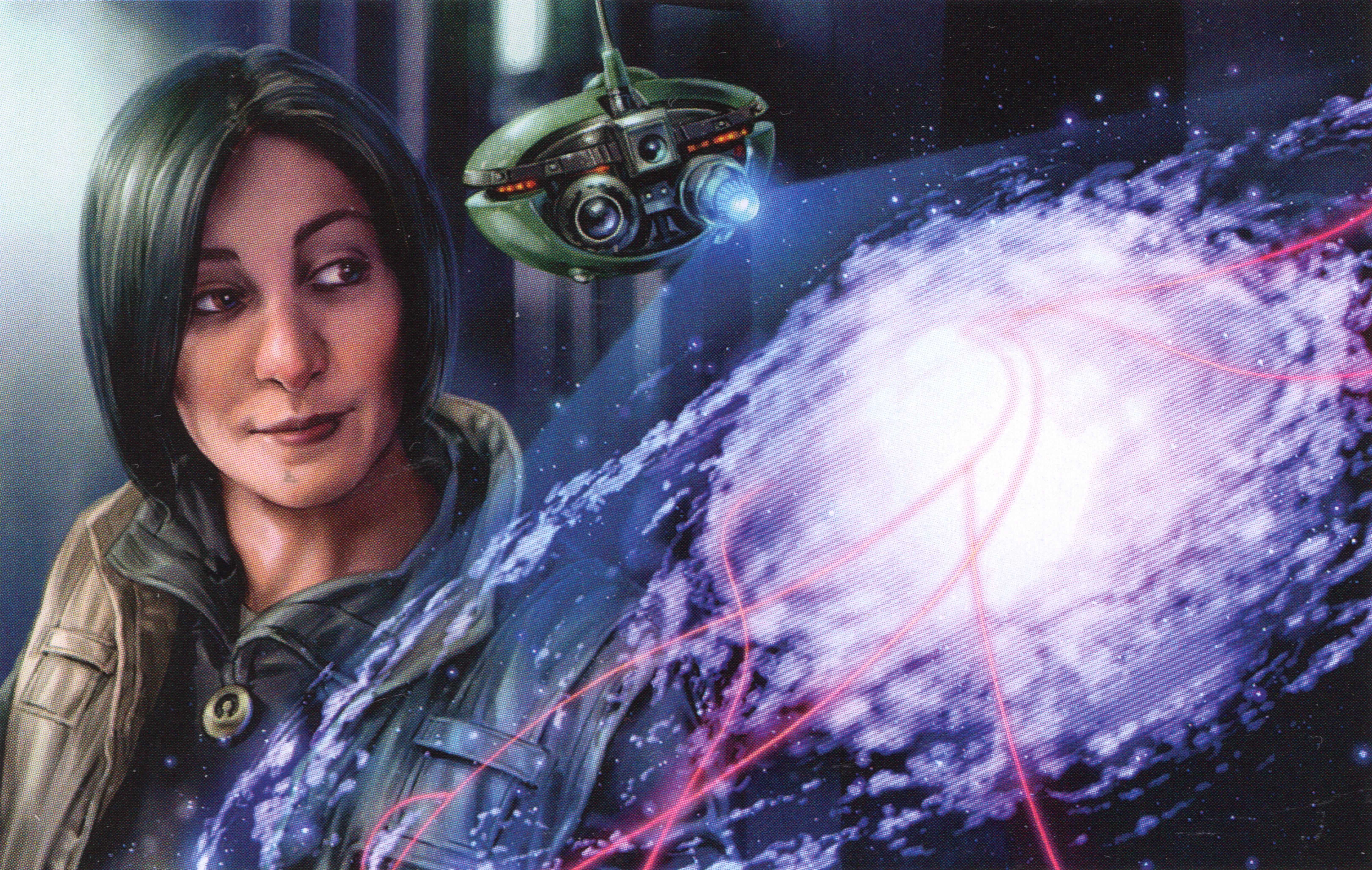 Corellia Antilles views a hologram of the galaxy with its major trade routes highlighted.