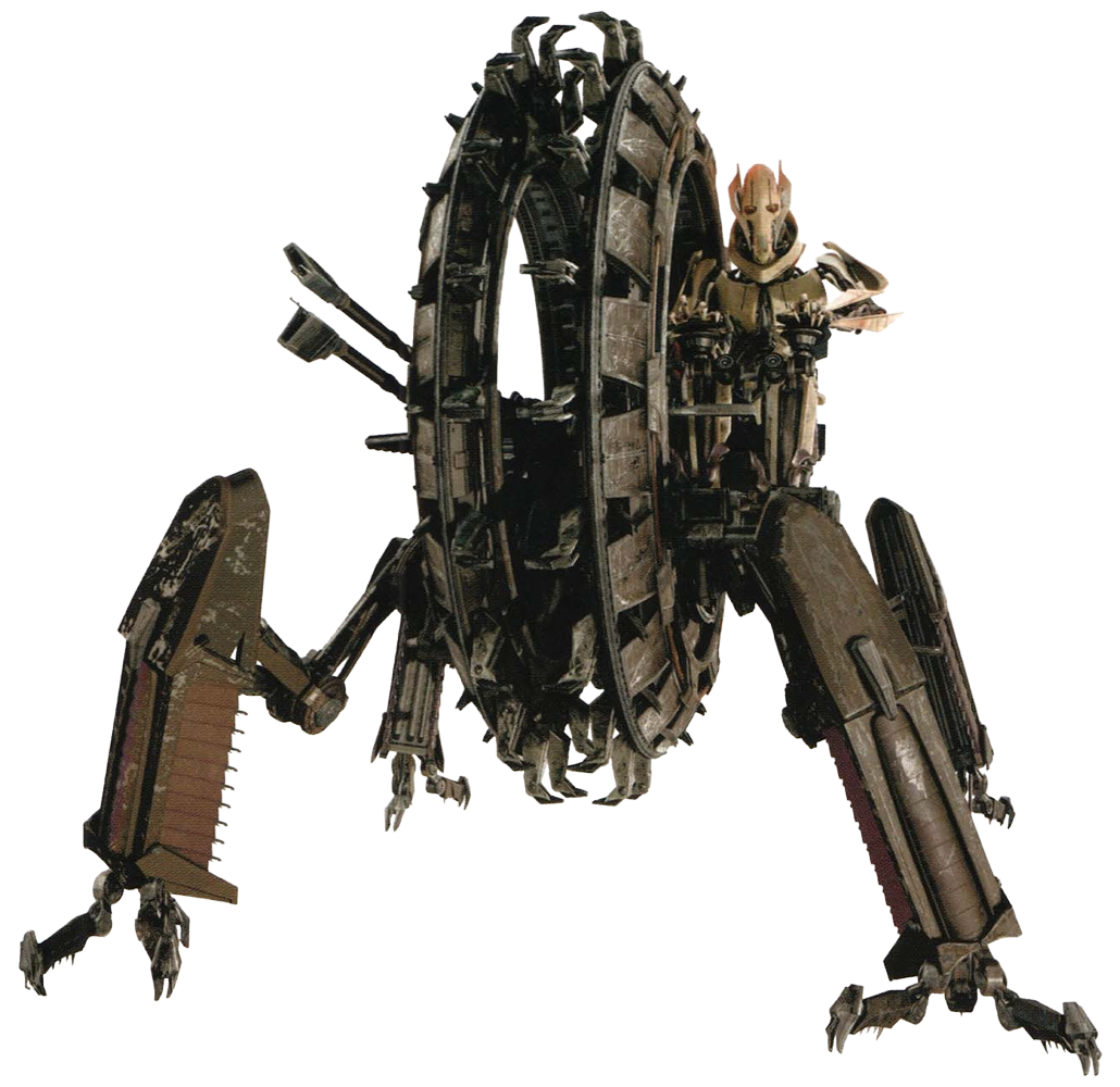 For Episode III, the wheel bike started off as a variety of fearsome vehicular concepts befitting the nasty droid general, such as included tank-like chariots. One idea was that the vehicle itself was an intelligent droid, mirroring Obi-Wan's faithful Boga as a "living" mount for General Grievous.[8]