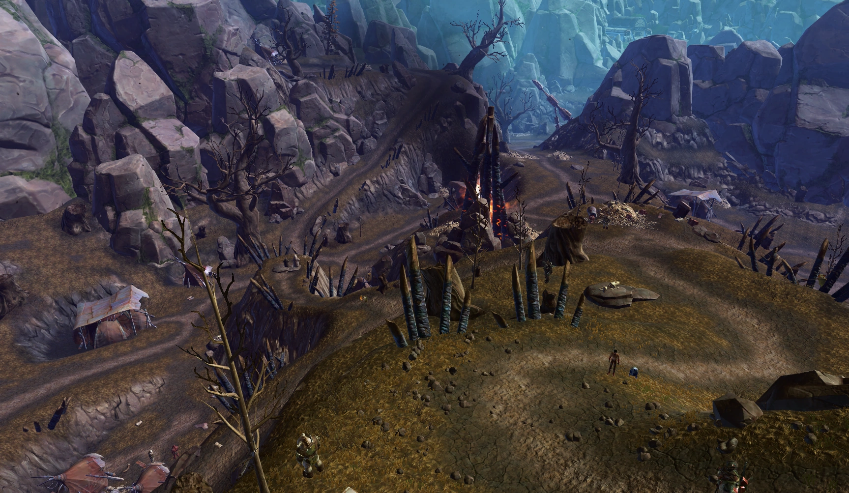A lush mountain range on Tython, the Tythos Ridge was a series of squat and jagged mountains that crossed Talss continent. Important to both the Je'daii Order and later the Jedi Order, the Ridge was landing place of two of the Tho Yor, around which formed the temples of Kaleth and Vur Tepe. Following the Force Wars, the area was eventually conquered by the Flesh Raiders, a species of barbaric primitives abandoned by the Infinite Empire on Tython. Scouring the land and burning away all plant life, the ground was a smoldering ruin and bones littered the few paths carved across the landscape. When the Jedi Order relocated to Tython following the Great Galactic War, Jedi Master Shol Bestros proposed that a meditative retreat be constructed on the Ridge. Before such endeavors could come to fruition, the Flesh Raiders had conquered the area and made it inhospitable.[2] Instead, the Order established their Temple just northwest of the Ridge during the Cold War between the Galactic Republic and the Sith Empire. Coinciding with the Order's resettlement, a group of Twi'lek refugees established the Kalikori village in the foothills of the Tythos Ridge.[1]