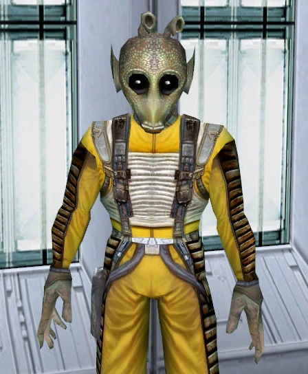 Tyvark Luowan was a male Rodian who ran a store in Ahto City, selling Aratech equipment during the Jedi Civil War. In 3956 BBY, he was on good terms with the local Galactic Republic forces, often offering prime deals or beneficial payment plans for Republic soldiers and other sentients with well-known or obvious leanings towards the Republic.[1]