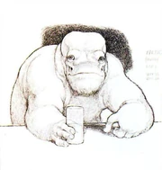 Notes accompanying Cobb's sketch describe the character as an arctic, mammal-like, fish eater who is very strong and very loyal.[2] These descriptors somewhat clash with the depicted location in the commercial. However, as the character appears to be an unused cantina denizen, it is possible that the planet visible in the commercial was intended to be Tatooine, and not necessarily the character's homeworld.