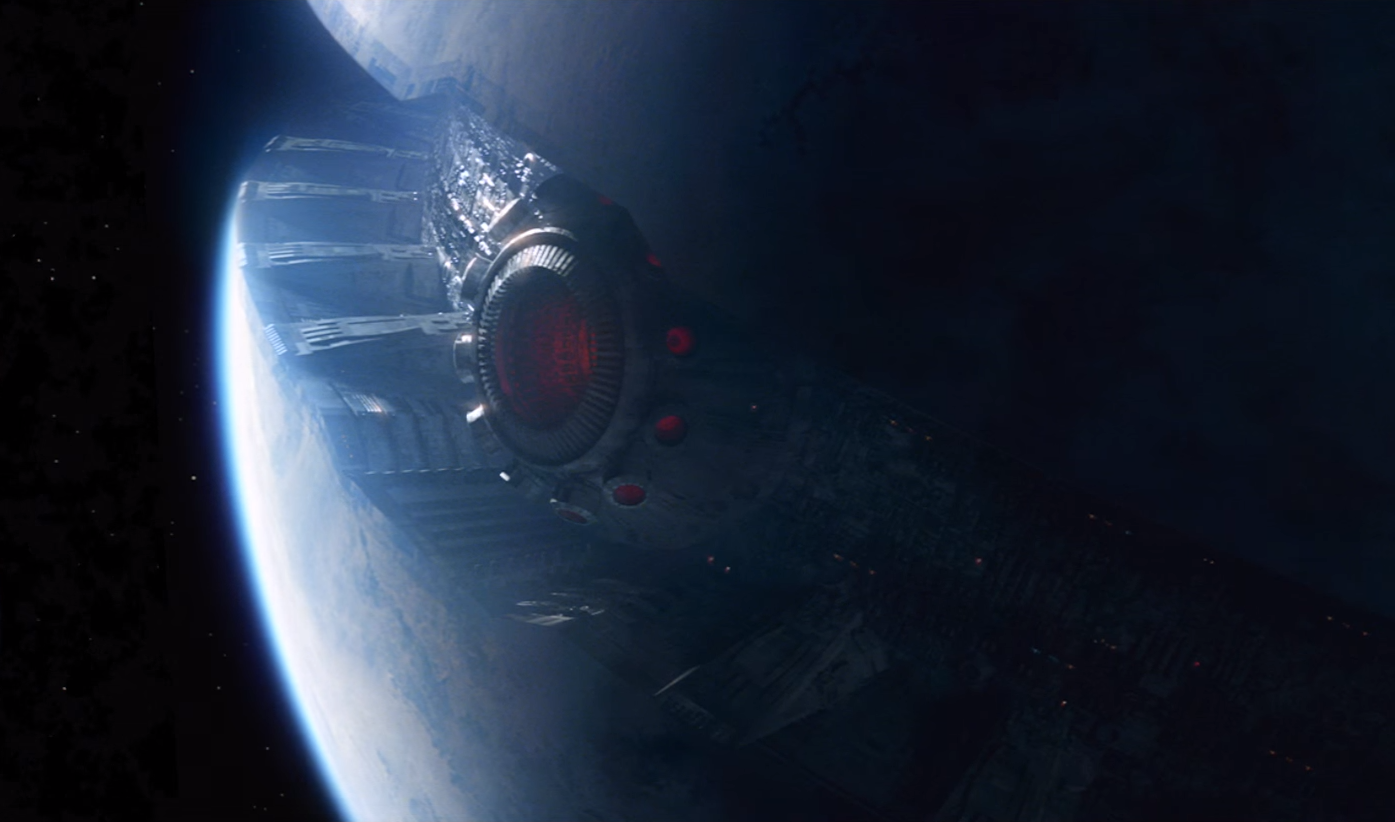 Following the destruction of Starkiller Base, Rey traveled to the Unknown Regions world of Ahch-To to seek out Jedi Master Luke Skywalker.[24] There, a greatly reluctant Skywalker agreed to train her in the Jedi ways. After Rey returned to the wider galaxy in an attempt to redeem Kylo Ren, Skywalker decided to aid the Resistance by using a Force projection to distract Ren during the Battle of Crait so that the Resistance could escape off-world aboard the Millennium Falcon with Rey and Chewbacca. The stress created by the Force projection proved too great and Skywalker became one with the Force.[41] The Unknown Regions were used by the First Order to hide the Supremacy before the Battle of Crait.[24]