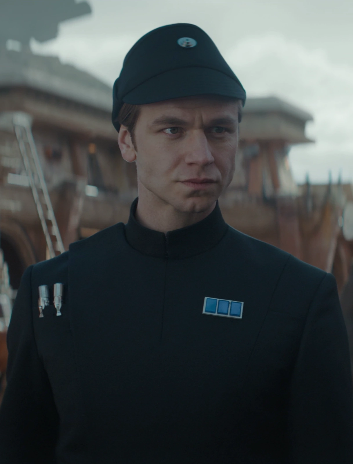 Vanis Tigo first appeared in "The Axe Forgets," the fifth episode of the Disney+ live-action series Star Wars: Andor,[1] released on October 5, 2022.[11] The first we saw him, he sported a lieutenant rank plaque of 3 blue squares while being addressed as captain, [1] this was probably a costume error, because, in the following episodes, he sported the correct captain rank plaque of 4 blue squares.[6] The character was portrayed by Wilf Scolding[1] and footage of him was first shown in the first official trailer for the series on August 1 of that year.[12] He was later identified in a since-deleted promotional image asset released on Getty Images by Walt Disney Studios on the same day.[13]