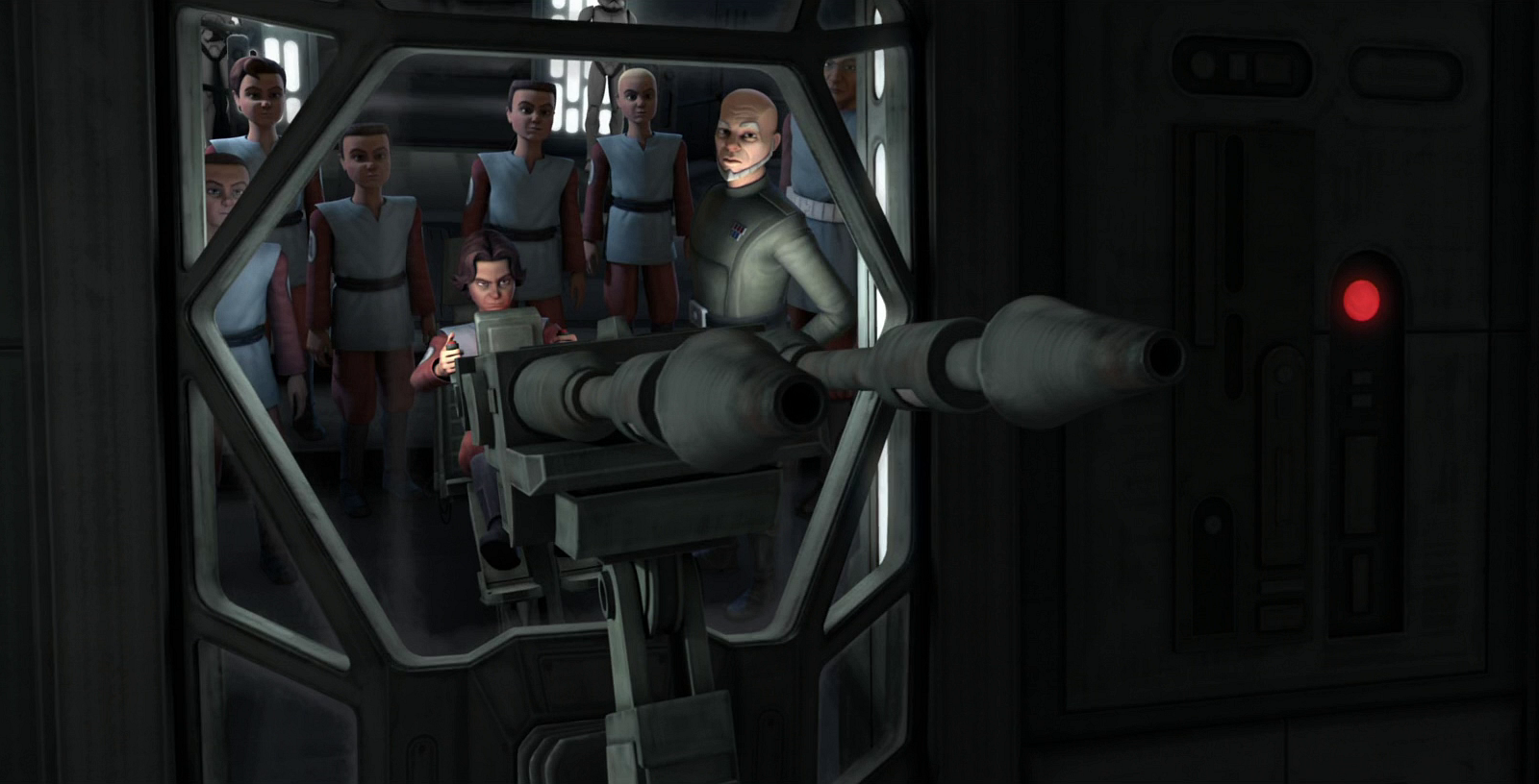 During the ground war, the Jedi Council dispatched Yularen aboard a Venator to again penetrate the blockade and land Padawan Ahsoka Tano on the surface. On the ship's return journey away from the planet, it engaged three Munificent-class star frigates and was able to withdraw. In the next attack, Yularen, accompanied by Jedi Master Yoda, commanded the Resolute to lead two other Venators and four Acclamator-class assault ships to breach the Separatist blockade. The Republic forced the Separatist armada into retreat, allowing the Acclamators to reach the surface, deploy clone troops and secure a victory. Following the end of the Christophsis campaign, the 501st Legion under Skywalker and Tano rescued Rotta, Jabba Desilijic Tiure's son, from the B'omarr Order Monastery on Teth. To reinforce the ground forces, Yularen arrived on a Venator, which deployed Kenobi and clone pilots aboard fighters before duelling a Separatist Munificent. A vulture droid's suicide attack damaged the ship's port rear hangar, killing several clone pilots and crew, but the mission to save Rotta culminated in a Republic success.[26]