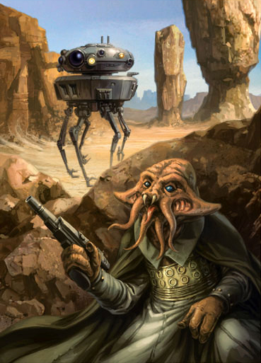 The droids also saw wide service with the Imperial Intelligence's Analysis Bureau, which used them as remote surveillance droids posted largely in the Outer Rim Territories. In conflict zones, probots often worked alongside the Imperial Navy to monitor traffic and provide early warnings of attack.[1]