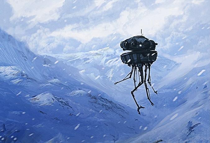 One Arakyd Viper, launched from an Imperial II-class Star Destroyer of Death Squadron,[17] landed on the ice planet Hoth as part of Vader's galaxy-wide search for the hidden Rebel base.[7] After it emerged from its hyperspace pod, the probe droid detected a faint comm signal and began to travel toward its probable destination point.[1] It encountered a wampa ice creature, at first probing it with its laser, then vaporizing it when it appeared to be a threat.[18] The probe droid had to shut down most of its power during a fierce snowstorm that night, activating its particle shield to protect itself from the thick snow hazard.[1]