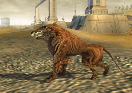 The vornskr, native to the planet Myrkr, were a wild, vicious canine species that had the unusual ability to sense the Force. This ability evolved to help them hunt ysalamiri, but a side effect caused them to think that Force-sensitives were their favorite prey, including Jedi in their appetite.