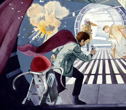 Returning to Nar Shaddaa, Calrissian bought a used-starship lot from a Duros, but discovered the business was expensive and difficult to run. He was pondering selling it off when the Empire arrived in the system. Calrissian donated his inventory to his fellow outlaws, and Vuffi Raa piloted the Millennium Falcon in the resulting Battle of Nar Shaddaa.[6] The attack was diverted, but less than ten percent of his stock was still space-worthy. Calrissian sold ninety percent ownership in what was left of his lot to Roa at a loss.[7]