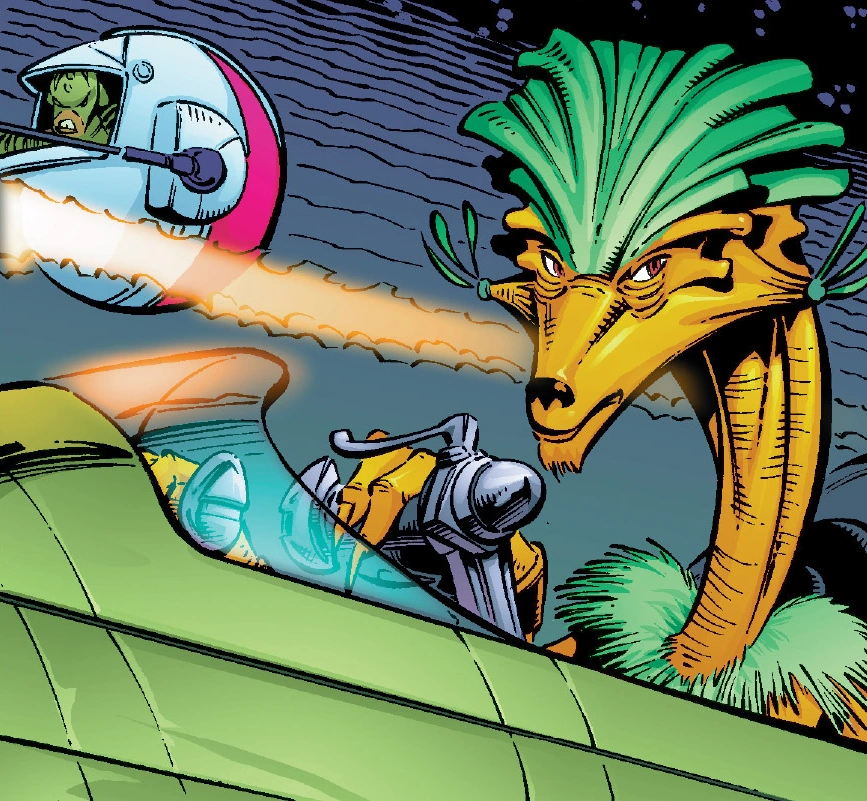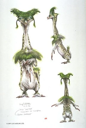 From Ord Radama, the Devlikk Wan Sandage came from a family of 128 brothers and sisters. He became the only male Podracer of his species in more than thirty generations. Sandage piloted since the age of two, using a Podracer fashioned on Ord Radama itself. On other planets his sense of direction was distorted, rendering him constantly discombobulated when racing. Sandage became desperate to defeat Sebulba,[6] willing to result to risky tactics to do so.