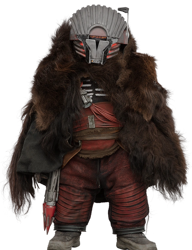 Weazel was a human male with brown hair, blue eyes, and light skin. Weazel, who stood shorter than most humans,[8] was once a common criminal for one of the five major crime syndicates but ultimately turned against them and believed in bringing justice to those throughout the galaxy who had been hurt by the syndicates and the Empire. As part of his operations, he carried a K21c portable ordnance launcher from Merr-Sonn Munitions and wore a Kalevalan tracker helmet that was equipped with a rangefinder[3] and a device that enabled him to communicate with Nest.[10]