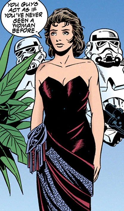 Shortly after the Battle of Yavin, Winter joined Han Solo's group of criminals to perform a heist on Black Sun official Avrak Villachor's well-secured vault on the planet Wukkar. She had been selected by Mazzic, a Myke smuggler, for her photographic memory and good knowledge of security systems. At the time, Winter had no idea if Leia was still alive, as she did not know whether the Princess had been on Alderaan when the Death Star destroyed the planet. She eventually learned from Solo that Leia was fine, much to Winter's relief.[15]