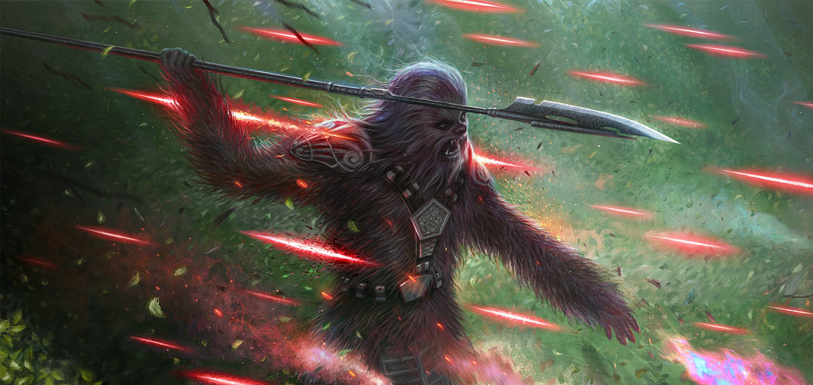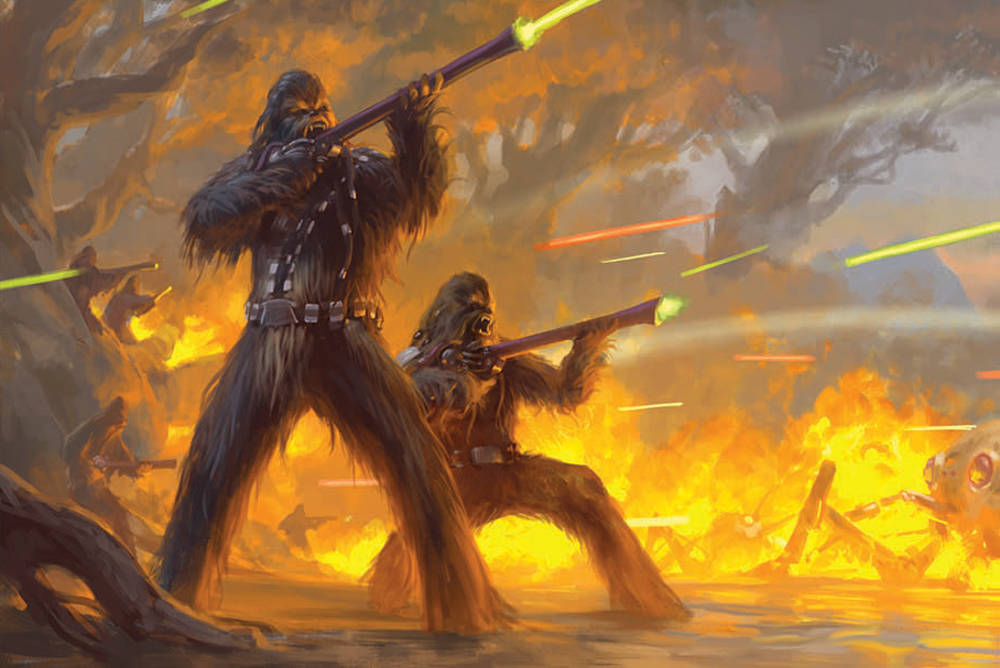 Despite these grave circumstances for their race, the Wookiees nonetheless found ways to help others. In the early days of the Empire, the Outer Rim planet of Lasan, home to the Lasat, was brutally sacked and devastated by the Empire for daring to question the new regime. Unable to stand by and watch, many Wookiees went to Lasan and fought the Empire with weapons forged from the wroshyr trees of their homeworld, in many cases giving their own lives to save the Lasats. Because of their actions, a few Lasats (including Garazeb Orrelios) were able to escape the genocide and survive in the wider galaxy.