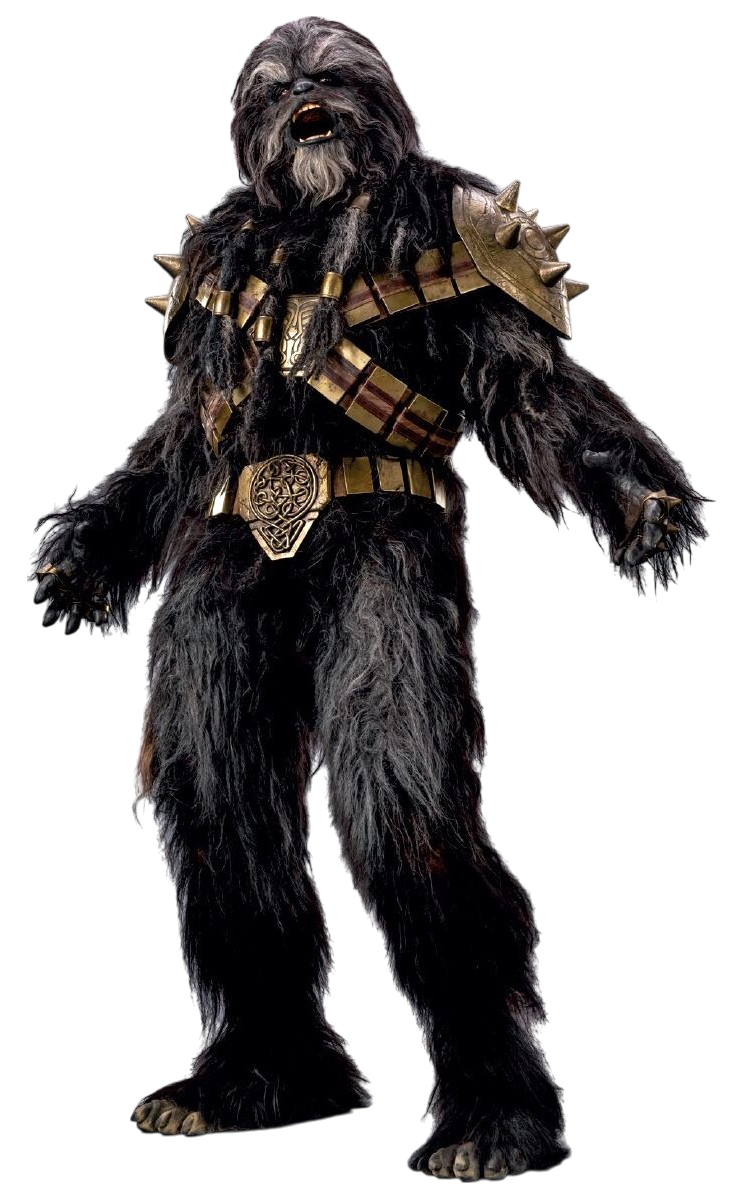 Wookiees, known in their own language of Shyriiwook as "the People of the Trees," were a species of tall, hairy humanoids that were native to the planet Kashyyyk. A notable member of this species was the warrior Chewbacca, Han Solo's best friend and co-pilot, who played a vital role in the Clone Wars during the Battle of Kashyyyk, the Galactic Civil War by aiding the Rebel Alliance in their fight against the Galactic Empire, and the war against the First Order. They were quite strong, and were known to rip people's arms out of their sockets when provoked. Though being from a temperate planet known for its swamps and forests, Wookiees were perfectly comfortable on icy worlds like Ilum and Hoth, not requiring any additional protective clothing, i.e. gloves or boots.