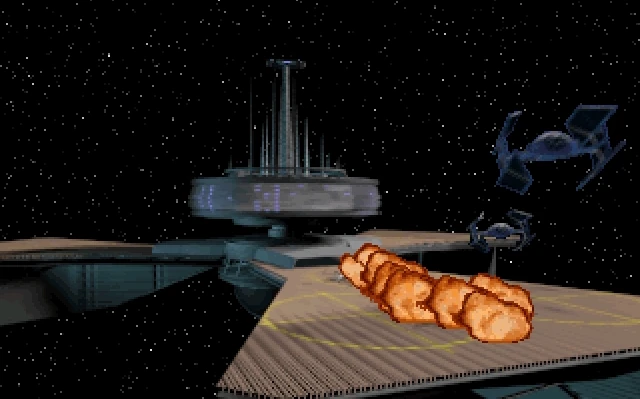 The XQ Platforms were first introduced in Star Wars: TIE Fighter,[1] replacing the combinations of freighters and cargo containers used to represent space stations in the preceding Star Wars: X-Wing.