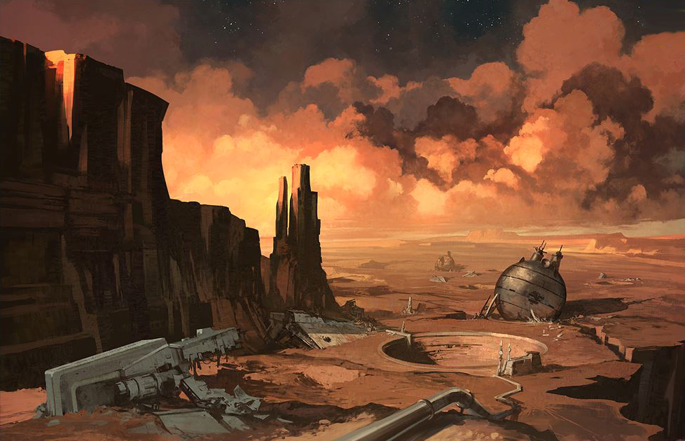 However, despite the precautions of the Geonosians, Xorrn and their operations were eventually discovered by the Republic after the Clone Wars' inception, where it subsequently became war zone for the conflict's duration. Since its discovery near the war's onset, Xorrn had become subject to numerous attacks, and after a few failed attempts at an atmospheric insertion on other Geonosian worlds, the Republic decided that Xorrn was no longer worth further casualties. However, before departing, the Republic ordered the Ferra sector fleet to commence a planetary bombardment on the facilities, which caused several Trade Federation core ships picking up droid shipments to become caught in the attack, leaving behind a graveyard of their gutted hulls across Xorrn's surface.[1]