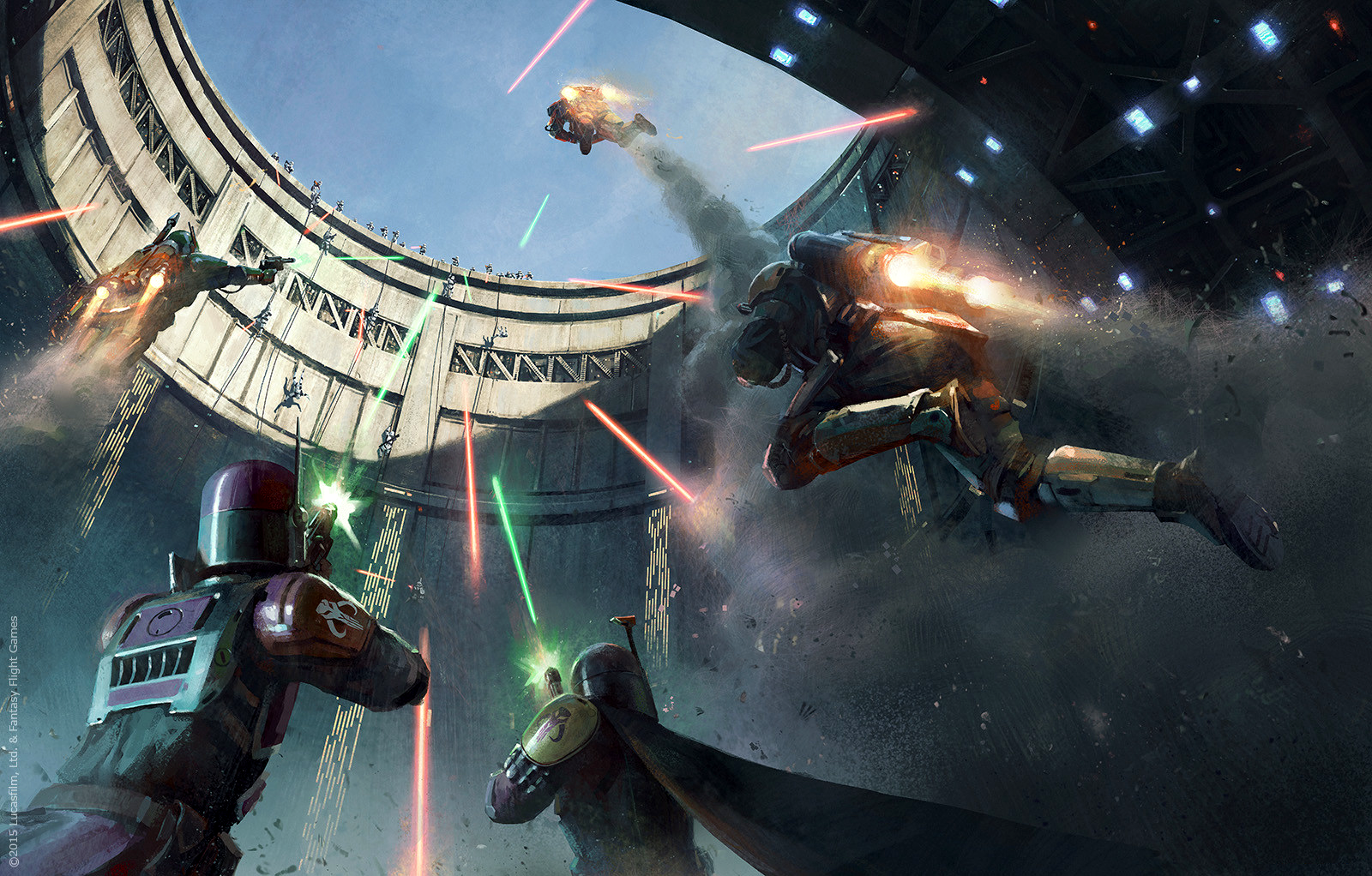 Located beneath Xorrn's surface was Foundry Four, a functioning warren of five separate Geonosian-built droid factories, conjoined by a central command center, a monitoring station deep within the foundry, that was used to oversee the operations of the five factories, and later used to hold meetings of the Clan Assembly. After the collapse of several landing shafts during the Clone Wars, two shafts, located at each factory, remained active and were used for the importing of raw materials and exporting products finished within the facility. Each shaft ran 400 meters below the surface to a corvette-sized landing platform located near a staging area used for cargo.[1]