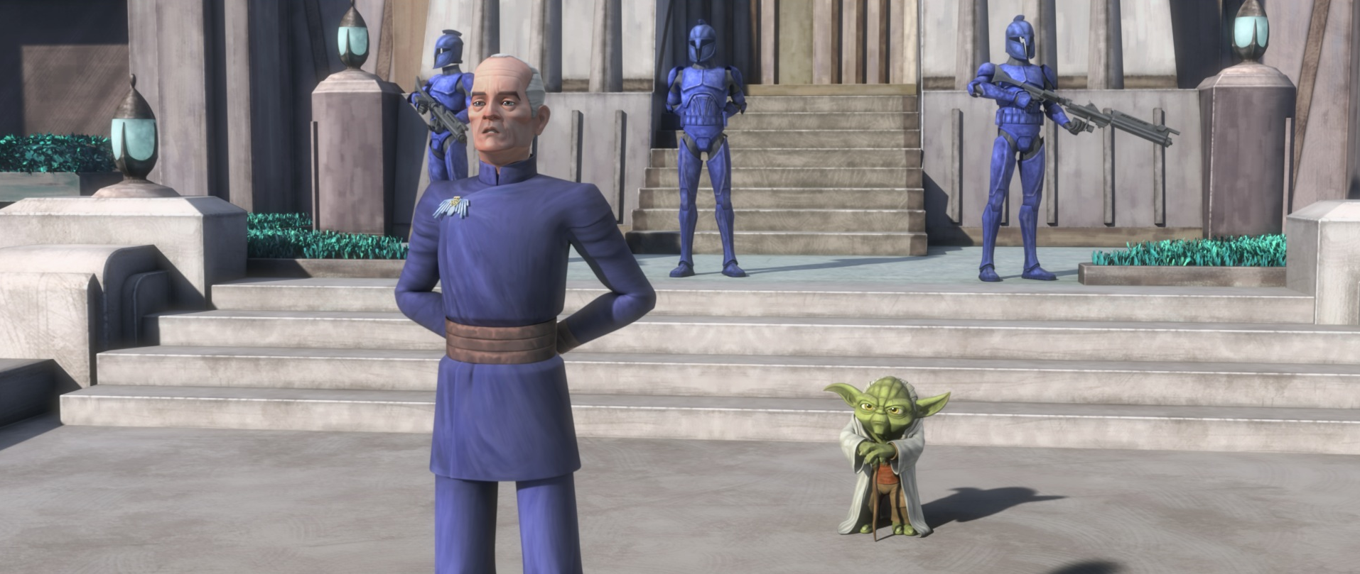 "You must continue. The great good is a good vision. Fight for this good as well, the Jedi do." - ―Yoda and Chancellor Kyong Greylark