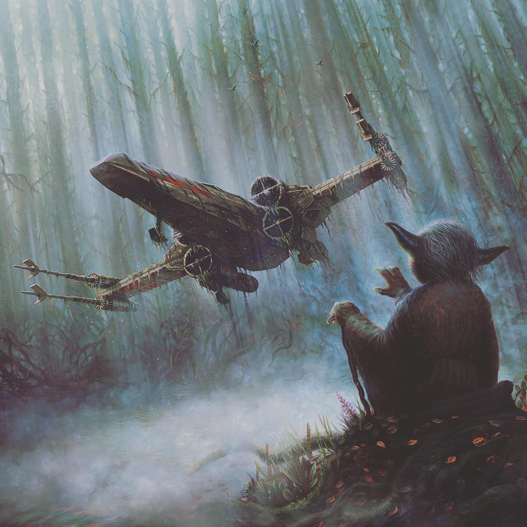 Yoda uses the Force to lift Skywalker's X-wing out of the Dagobah swamp.